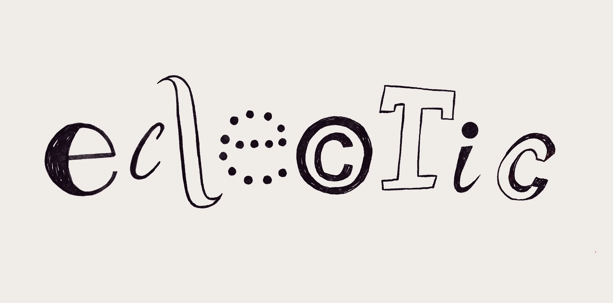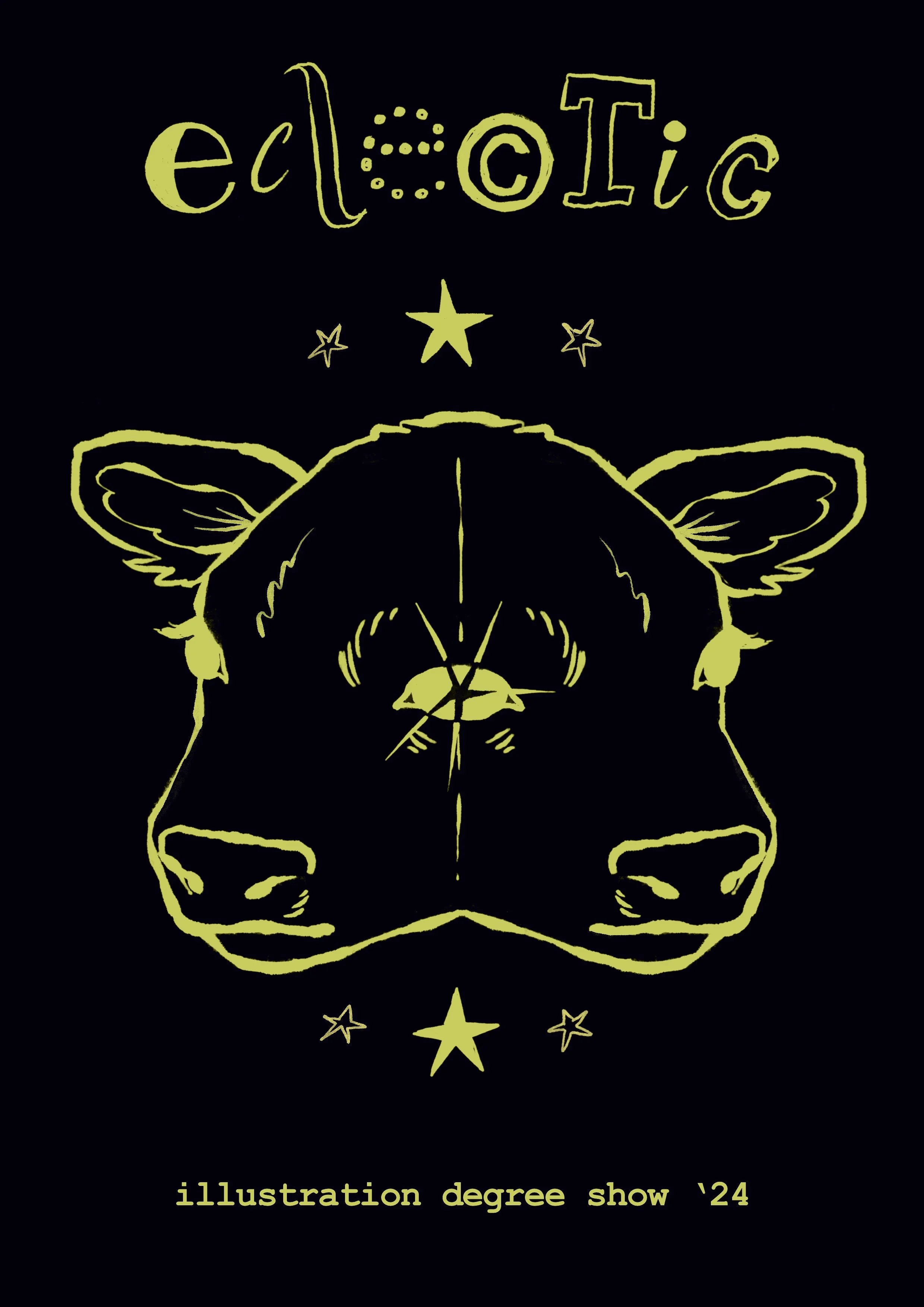 this page is comprised of design, fonts, and wordmarks made with the intent to market the bsoa illustration degree show 2024, titled ‘eclectic’.